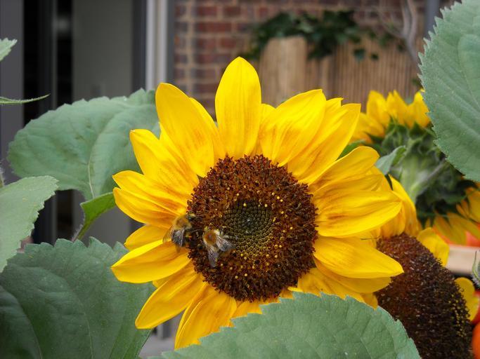 Keywords: flowers sunflowers nature yellow bloom plants flora insects bees