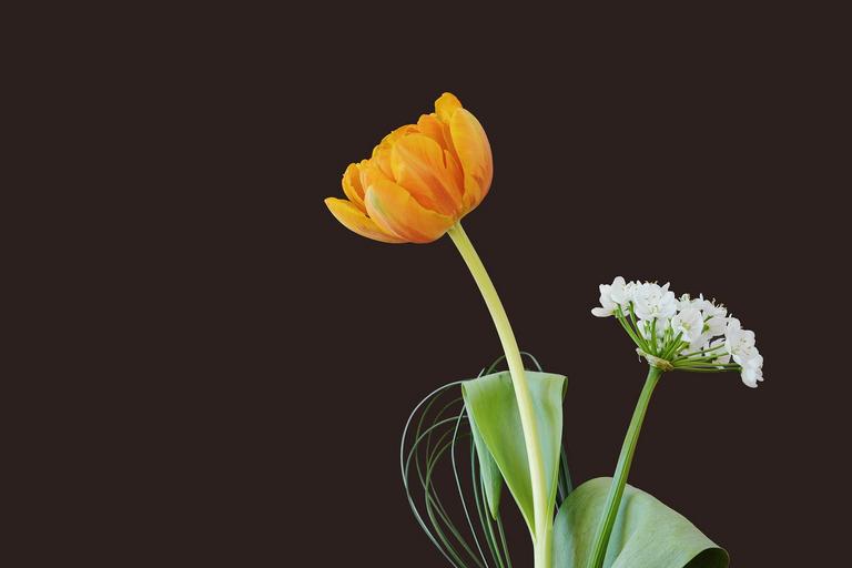 Keywords: flowers tulip blossom bloom orange leek flower white close