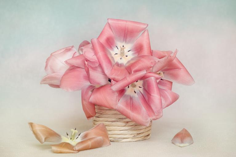 Keywords: flowers tulips petals pink pot deco decoration spring flower schnittblume close still life