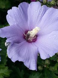 Keywords: flowers white dew drops water droplets purple pink petals wet rainy fresh delicate blossoms blooms blooming green leaves green background flowering plants decorative ornamental fleurs nature