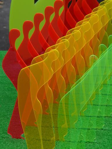 Keywords: fluorescent crowd human personal abstract modern art art colorful color gaudy bright artwork plastic red yellow green orange