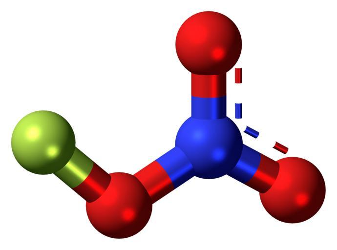 | Keywords: Fluorine nitrate molecule ball.png Ball-and-stick model of the fluorine nitrate molecule an unstable derivative of nitric acid O N F 2012-07-21 own DS Visualizer Jynto more from this user Space-filling version cc-zero Images by Jynto Nitrogen oxohalides Oxygen-fluorine compounds Oxofluorides Ball-and-stick models |
