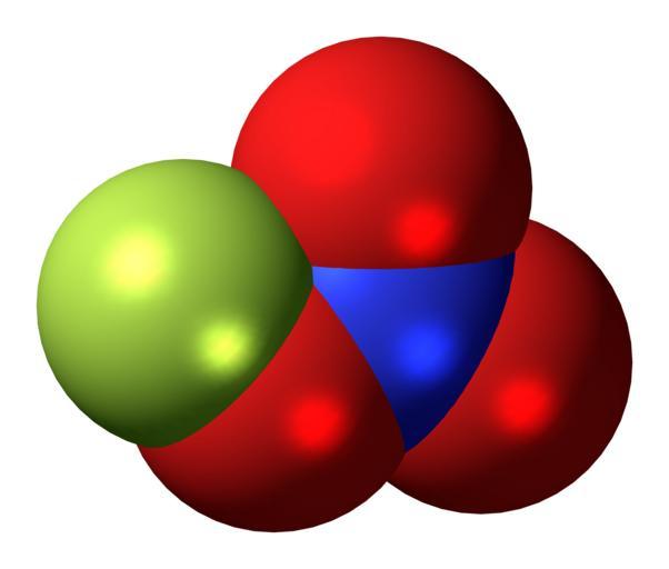 | Keywords: Fluorine nitrate molecule spacefill.png Space-filling model of the fluorine nitrate molecule an unstable derivative of nitric acid O N F 2012-07-21 own DS Visualizer Jynto more from this user Ball-and-stick version cc-zero Images by Jynto Nitrogen oxohalides Oxygen-fluorine compounds Oxofluorides Space-filling models |