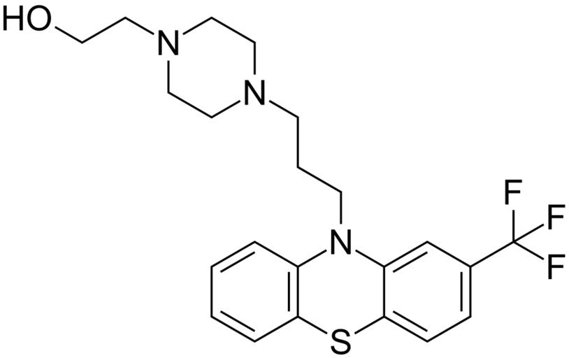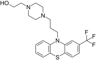 | Keywords: Fluphenazine 200.svg  validSVG Structure of 2- 4- 3- 2- trifluoromethyl -10H-phenothiazin-10-yl propyl piperazin-1-yl ethanol Own 2014-05-25 Emeldir <span class signature-talk ></span> thumb left Chemical structure verified https //upload wikimedia org/wikipedia/commons/2/2a/Fluphenazine_200 svg 1S/C22H26F3N3OS/c23-22 24 25 17-6-7-21-19 16-17 28 18-4-1-2-5-20 18 30-21 9-3-8-26-10-12-27 13-11-26 14-15-29/h1-2 4-7 16 29H 3 8-15H2 PLDUPXSUYLZYBN-UHFFFAOYSA-N 69-23-8 Synonyms <small><nowiki>2- 4- 3- 2- Trifluoromethyl -10H-phenothiazin-10-yl propyl piperazin-1-yl ethanol 2-4-3-2- trifluoromethyl phenothiazin-10-ylpropylpiperazin-1-ylethanol 2- 4-3- 2-Trifluoromethyl-phenothiazin-10-yl -propyl-piperazin-1-yl -ethanol 2- 4-3- 2-Trifluoromethylphenothiazin-10-yl propylpiperazin-1-yl ethanol 4-3-2- Trifluoromethyl -10H-phenothiazin-10-ylpropyl-1-piperazineethanol 4-3-2- Trifluoromethyl -10H-phenothiazin-10-ylpropyl-1-piperazineethanol dihydrochloride A 4077 Anatensol Calmansial CCRIS 4032 Dapotum Elinol Flufenatsiini Flufenatsiinihydrokloridi Flufenazin Flufenazin-dihydrochlorid Flufenazin-hidroklorid Flufenazina Flufenazina hidrocloruro de Flufenazine Flufenazinhydroklorid Flufenazino hidrochloridas Flufenazyny chlorowodorek Fluorfenazine Fluorophenazine Fluorophenazine dihydrochloride Fluphenazine Fluphenazine chloride Fluphenazine Decanoate Generic Fluphenazine Hydrochloride Generic Prolixin Prolixin Decanoate Fluphenazine dihydrochloride Fluphenazine Dihydrochloride Fluphenazine Diydrochloride Fluphenazine hydrochloride Fluphenazine Hydrochloride Fluphenazini Dihydrochloridum Fluphenazini Hydrochloridum Fluphenazinum Fluphénazine chlorhydrate de Flupnepatine hydrochloride Ftorphenazine HSDB 3334 Liogen Lyorodin Mirenil Modecate Moditen NSC 179197 Omca Pacinol Permitil Permitil hydrochloride Phthorphenazine Prolixin S-94 Sevinol Siqualine Siqualon SQ 4918 Squibb 4918 Tensofin Trancin Triflumethazine Valamina Vespazine</nowiki></small> PD-chem Fluphenazine  |