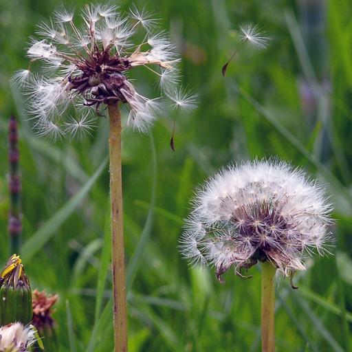 Keywords: flying ripe fruits withered dandelion flower meadow plant