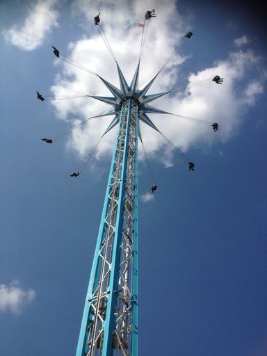 Keywords: flying swing fairground ride amusement sky excitement spinning air blue outdoor