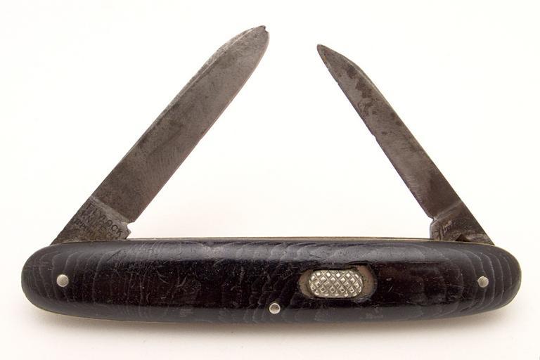 Keywords: Flylock pocket knife with two blades.jpg en Pocket knife made by Flylock Knife Company of Bridgeport Connecticut with two spring-loaded button activated blades Scales are made of horn Measures 3 3/8 86mm closed These were manufactured from 1918-1929 2013-04-17 21 40 14 own Junkyardsparkle cc-zero Uploaded with UploadWizard Pocket knives Files by User Junkyardsparkle