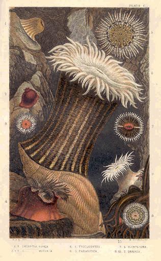 | Keywords: FMIB 32636 1 Sagartia Nivea, 2 3 4 S Miniata,; 5 S Troglodytes, 6 S Parasitica, 7 S Icthystoma8 9 S Ornata.jpeg 1 Sagartia Nivea 2 3 4 S Miniata ; 5 S Troglodytes 6 S Parasitica 7 S Icthystoma 8 9 S Ornata Subject Sea anemones Tag Invertebrates 1860 Cite book History of the British Sea-Anemones and Corals Gosse Philip Henry London Van Voorst Paternoster Row 1860 Facing Page 42 Creator Philip Henry Gosse PD-UWASH-FMIB Institution University of Washington FMIB-source accession number 32636 Images from the Freshwater and Marine Image Bank to check Actiniaria Actinologia britannica a history of the British sea-anemones and corals |