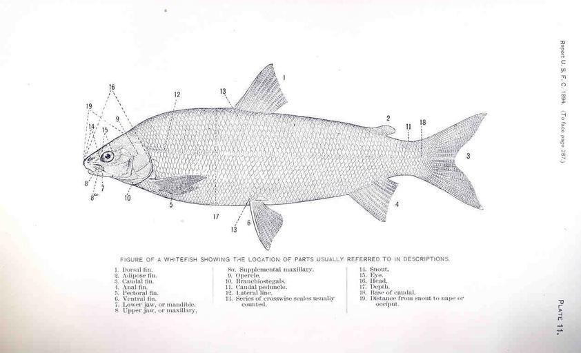 | Keywords: FMIB 33566 Figure of a Whitefish Showing the Location of Parts Usually Referred to in Descriptions.jpeg s Subject Whitefishes--Anatomy Tag Fish 1893-1894 Cite book Whitefishes of North America Evermann Barton W Washington DC Government Printing Office 1896 Report of the Commissioner United States Commission of Fish and Fisheries 1893-1894 Plate 11 Creator Barton Warren Evermann PD-UWASH-FMIB Institution University of Washington FMIB-source accession number 33566 Images from the Freshwater and Marine Image Bank to check Barton Warren Evermann |