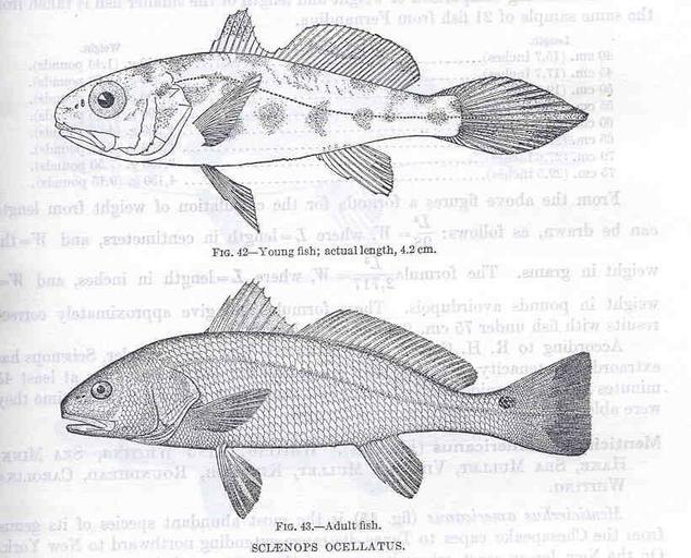 | Keywords: FMIB 33617 Sclaenops Ocellatus.jpeg Sclaenops Ocellatus Young Fish; Adult Fish Subject Sclaenops Ocellatus Tag Fish 1923-1924 Cite book Contributions to Life Histories of Sclaenidae of the Eastern United States Coast Bulletin of the United States Bureau of Fisheries vol 39 1923-1924 Welsh William Welsh Washington DC Government Printing Office 1924 185 William Welsh Welsh PD-UWASH-FMIB Institution University of Washington FMIB-source accession number 33617 Images from the Freshwater and Marine Image Bank to check William Welsh Welsh Sciaenops ocellatus |