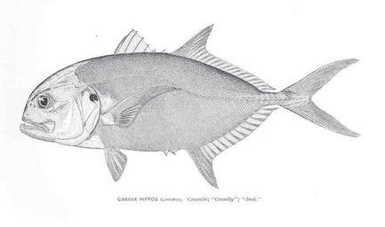 | Keywords: FMIB 33880 Cranix Hippos (Linnaeus).jpeg Cranix Hippos Linnaeus Crevalle; 'Cavally'; 'Jack' Subject Carangidae Caranx Tag Fish 1895-1896 Cite book Fisheries of Indian River Florida Washington DC Government Printing Office 1898 Report of the Commissioner United States Commission of Fish and Fisheries 1895-1896 Plate 33 author PD-UWASH-FMIB Institution University of Washington FMIB-source accession number 33880 Images from the Freshwater and Marine Image Bank to check Caranx hippos | ||||