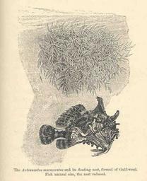 | Keywords: FMIB 35312 Antennarius marmoratus and its floating nest, formed of Gulf-weed.jpeg Antennarius marmoratus and its floating nest formed of Gulf-weed Subject Antennarius Tag Fish 1892 Cite book Along the Florida Reef Holder Charles Frederick New York City NY D Appleton and Company 1892 17 Creator Charles Frederick Holder PD-UWASH-FMIB Institution University of Washington FMIB-source accession number 35312 Images from the Freshwater and Marine Image Bank to check Charles Frederick Holder Histrio histrio |