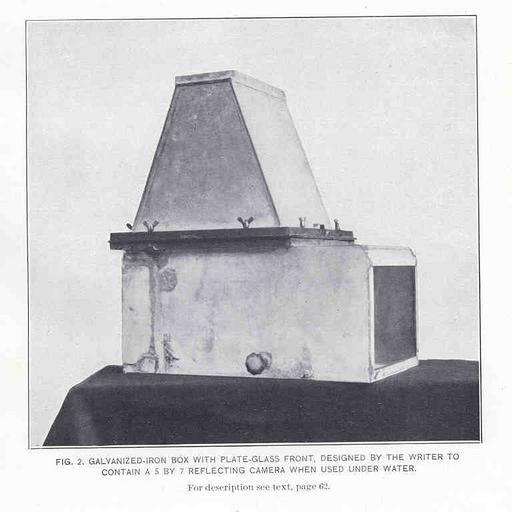 | Keywords: FMIB 35630 Galvanized-iron box with plate-glass front, designed by the writer to contain a 5 by 7 reflecting camera when used under water.jpeg check categories 3 September 2015 3 Galvanized-iron box with plate-glass front designed by the writer to contain a 5 by 7 reflecting camera when used under water Subject Underwater photography Tag Fisheries Techniques 1908 Cite book Photography of Aquatic Animals in Their Natural Environment Reighard Jacob Washington DC Government Printing Office 1908 Bulletin of the Bureau of Fisheries vol 27 1907 Plate V fig 2 Creator Jacob Ellsworth Reighard PD-UWASH-FMIB Institution University of Washington FMIB-source accession number 35630 Images from the Freshwater and Marine Image Bank to check Jacob Ellsworth Reighard Underwater cameras Fisheries |