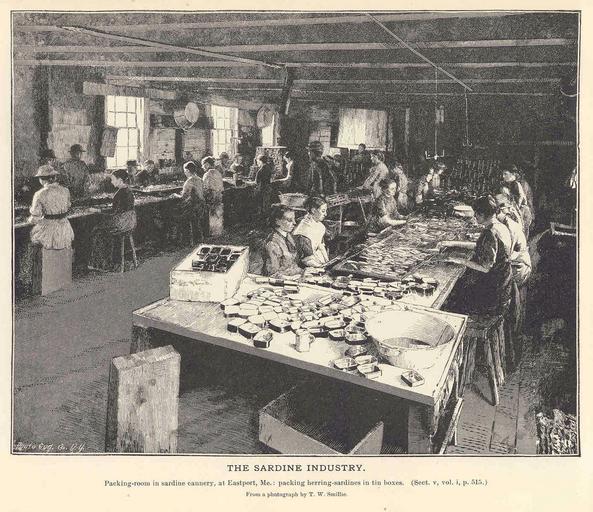 | Keywords: FMIB 35838 Sardine Industry.jpeg check categories 3 September 2015 4 Sardine Industry Packing-room in sardine cannery at Eastport Me packing herring-sardines in tin boxes Subject Sardine fisheries Canneries Women fish trade workers Fishery processing Geographic Subject United States--Maine--Eastport Tag Commercial Fisheries 1887 Cite book Fisheries and Fishery Industries of the United States Section V History and Methods of the Fisheries v 2 Goode George Brown Washington DC Government Printing Office 1887 Plate 143 Creator Thomas William Smillie PD-UWASH-FMIB Institution University of Washington FMIB-source accession number 35838 Images from the Freshwater and Marine Image Bank to check Thomas William Smillie Canneries Fisheries Eastport Maine |