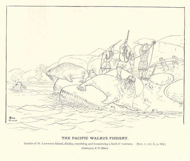 | Keywords: FMIB 35857 Pacific Walrus Fishery.jpeg check categories 1 September 2015 5 Pacific Walrus Fishery Innuits of St Lawrence Island Alaska surprising and harpooning a herd of walruses Subject Sealing industry Inuit--Alaska Geographic Subject United States--Alaska--St Lawrence Island Tag Aquatic Mammals Traditional Fisheries 1887 Cite book Fisheries and Fishery Industries of the United States Section V History and Methods of the Fisheries v 2 Goode George Brown Washington DC Government Printing Office 1887 Plate 214 Creator Henry Wood Elliott PD-UWASH-FMIB Institution University of Washington FMIB-source accession number 35857 Images from the Freshwater and Marine Image Bank to check Henry W Elliott Seal hunting Marine mammals Fisheries Saint Lawrence Island |