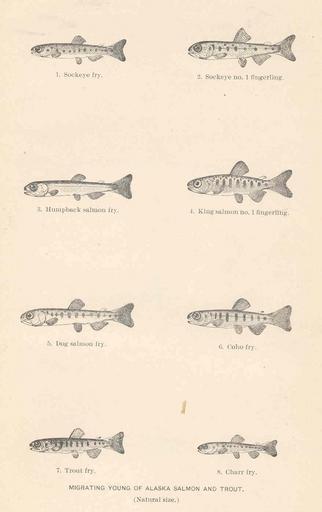 MAKE A MEME View Large Image Migrating Young of Alaska Salmon and Trout.jpeg Migrating Young of Alaska Salmon and Trout 1 Sockeye fry; 2 sockeye no 1 fingerling; 3 humpback salmon fry; 4 king salmon no 1 fingerling; 5 dog salmon fry; 6 coho fry; 7 trout fry; 8 charr ...