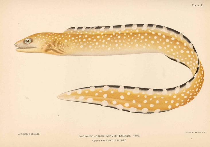 | Keywords: FMIB 38150 Lycodontis jordani Evermann & Marsh Type.jpeg Lycodontis jordani Evermann Marsh Type Subject Zoarcidae Lycodontis Tag Fish 1902 Cite book Fishes of Porto Rico Everman Barton W ; Marsh Millard C Washington DC Government Printing Office 1902 Bulletin of the United States Fish Commission v 20 pt 1 for 1900 Plate 2 Creator Barton Warren Evermann Creator Millard Caleb Marsh PD-UWASH-FMIB Institution University of Washington FMIB-source accession number 38150 Images from the Freshwater and Marine Image Bank to check Barton Warren Evermann Millard Caleb Marsh Gymnothorax ocellatus |