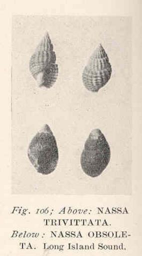 | Keywords: FMIB 38572 Nassa trivittata (above); Nassa obsoleta (below) Long Island Sound.jpeg Nassa trivittata above ; Nassa obsoleta below Long Island Sound Subject Nassa Snails Tag Mollusks 1905 Cite book Sea-Shore Life the Invertebrates of the New York Coast and the Adjacent Coast Region Mayer Alfred Goldsborough New York City NY A S Barnes Company 1906 Fig 106 Creator Alfred Goldsborough Mayer PD-UWASH-FMIB Institution University of Washington FMIB-source accession number 38572 Images from the Freshwater and Marine Image Bank to check Alfred G Mayer Ilyanassa trivittata Snails of the United States Ilyanassa obsoleta |