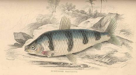 | Keywords: FMIB 38609 Schizodon fasciatus.jpeg  check categories 13 September 2015 4 Schizodon fasciatus Subject Curimata Schizodon Tag Fish 1852 Cite book Fishes of British Guiana Part I Schomburgk R H Edinburgh Scotland W H Lizars 1852 Naturalist's Library vol 39 Facing page 252 Creator Robert Hermann Schomburgk PD-UWASH-FMIB Institution University of Washington FMIB-source accession number 38609 Images from the Freshwater and Marine Image Bank to check Robert Hermann Schomburgk Curimatá Schizodon Schizodon fasciatus |