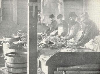 | Keywords: FMIB 38944 Splitting Haddock Preparatory to Making Finnan Haddie.jpeg check categories 16 August 2015 5 Splitting Haddock Preparatory to Making Finnan Haddie Subject Haddock Finnan haddie Smoked fish Salted fish Tag Commercial Fisheries 1899 Cite book Preservation of Fishery Products for Food Stevenson Charles H Washington DC Government Printing Office 1899 Bulletin of the United States Fish Commission vol 18 1898 Plate XXXIII-1 Creator Charles Hugh Stevenson PD-UWASH-FMIB Institution University of Washington FMIB-source accession number 38944 Images from the Freshwater and Marine Image Bank to check Charles Hugh Stevenson Melanogrammus aeglefinus Smoked fish Salt-cured fish Fisheries |