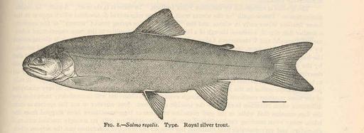 | Keywords: FMIB 38960 Salmo regalis Type Royal silver trout.jpeg Salmo regalis Type Royal silver trout Subject Salmo regalis Trout Tag Fish 1918 Cite book Fishes of the Lahontan System of Nevada and Northeastern California Snyder John Otterbein Washington DC Government Printing Office 1918 Bulletin of the United States Bureau of Fisheries vol 35 1915-1916 Fig 8 Creator John Otterbein Snyder PD-UWASH-FMIB Institution University of Washington FMIB-source accession number 38960 Images from the Freshwater and Marine Image Bank to check John Otterbein Snyder Unidentified Salmonidae |