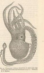 | Keywords: FMIB 39105 Tremoctopus violaceus, lateral view of adult male, from station 4086, with nearly ripe hectocotylus.jpeg  Tremoctopus violaceus lateral view of adult male from station 4086 with nearly ripe hectocotylus Subject Cephalopoda Tremoctopus Tag Fish 1914 Cite book Cephalopoda of the Hawaiian Islands Bulletin of the United States Bureau of Fisheries vol 32 1912 Berry S Stillman Washington DC Government P rinting Office 1914 Fig 10 R L Hudson PD-UWASH-FMIB Institution University of Washington FMIB-source accession number 39105 Images from the Freshwater and Marine Image Bank to check R L Hudson Tremoctopus |