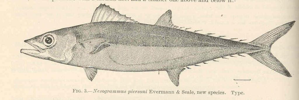| Keywords: FMIB 39225 Nesogrammus piersoni Evermann & Seale, new species Type.jpeg Nesogrammus piersoni Evermann Seale new species Type Subject Nesogrammus Tag Fish 1907 Cite book Fishes of the Philippine Islands Evermann Barton Warren Washington DC Government Printing Office 1907 Bulletin of the Bureau of Fisheries vol 26 1906 Fig 3 Creator Barton Warren Evermann PD-UWASH-FMIB Institution University of Washington FMIB-source accession number 39225 Images from the Freshwater and Marine Image Bank to check Barton Warren Evermann Grammatorcynus bilineatus |