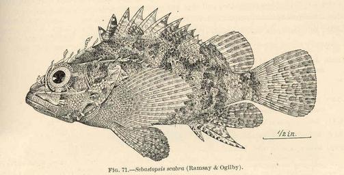| Keywords: FMIB 39663 Sebastopsis scabra (Ramsay & Ogilby).jpeg Sebastopsis scabra Ramsay Ogilby Subject Scorpionfishes Sebastopsis Tag Fish 1906 of the Species Found in the Archipelago with a Provisional Check-List of the Fishes of Oceania Jordan David Starr; Seale Alvin Washington DC Government Printing Office 1906 Bulletin of the Bureau of Fisheries v 25 1905 Fig 71 Creator David Starr Jordan Creator Alvin Seale PD-UWASH-FMIB Institution University of Washington FMIB-source accession number 39663 Images from the Freshwater and Marine Image Bank to check David Starr Jordan Alvin Seale Scorpaenodes scaber |