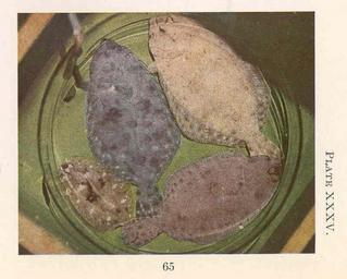 | Keywords: FMIB 40264 Paralichthys albiguttus, four specimens, adapted to blue, green, yellow and pink backgrounds respectively.jpeg Paralichthys albiguttus four specimens adapted to blue green yellow and pink backgrounds respectively Subject Gulf flounder--Adaptation Gulf flounder--Behavior Tag Fish 1916 Cite book Changes in Shade Color and Pattern in Fishes and their Bearing on the Problems of Adaptation and Behavior with Especial Reference to the Flounders Paralichthys and Ancylopsetts Bulletin of the United States Bureau of Fisheries vol 34 1914 Mast S O Washington DC Government Printing Office 1916 Plate XXXV-65 S O Mast PD-UWASH-FMIB Institution University of Washington FMIB-source accession number 40264 Images from the Freshwater and Marine Image Bank to check S O Mast Paralichthys albigutta |