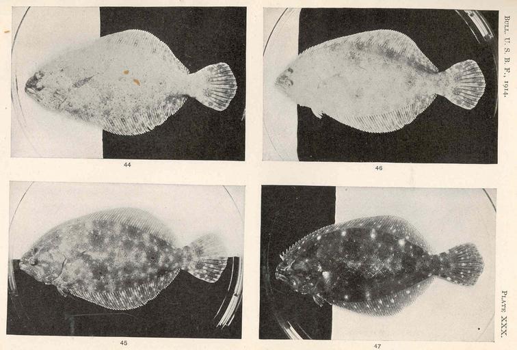 | Keywords: FMIB 40278 44-Paralichthys abliguttus, (G), 22 cm long, head continuously on white and tail on back This specimen was taken from a black.jpeg 44-Paralichthys abliguttus G 22 cm long head continuously on white and tail on back This specimen was taken from a black aquarium and was fully adapted to black in the beginning of the experiment 45- Individual G one eye on white the other on black continuously 46- Individual G continuously with head on white body on black 47- Individual G head on black body on white Subject Gulf flounder--Adaptation Gulf flounder--Behavior Tag Fish 1916 Cite book Changes in Shade Color and Pattern in Fishes and their Bearing on the Problems of Adaptation and Behavior with Especial Reference to the Flounders Paralichthys and Ancylopsetts Bulletin of the United States Bureau of Fisheries vol 34 1914 Mast S O Washington DC Government Printing Office 1916 Plate XXX S O Mast PD-UWASH-FMIB Institution University of Washington FMIB-source accession number 40278 Images from the Freshwater and Marine Image Bank to check S O Mast Paralichthys albigutta |