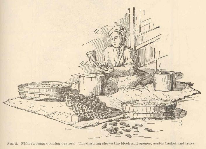 | Keywords: FMIB 40889 Fisherwoman opening oysters The drawing shows the block and opener, oyster basket and trays.jpeg check categories 17 August 2015 2 Fisherwoman opening oysters The drawing shows the block and opener oyster basket and trays Subject Women fish trade workers Oyster industry--Japan Fishery processing Tag Traditional Fisheries 1904 Cite book Japanese Oyster-Culture Dean Bashford Washington DC Government Printing Office 1904 Bulletin of the United States Fish Commission vol 22 1902 Fig 2 Creator Bashford Dean PD-UWASH-FMIB Institution University of Washington FMIB-source accession number 40889 Images from the Freshwater and Marine Image Bank to check Bashford Dean Fisheries |