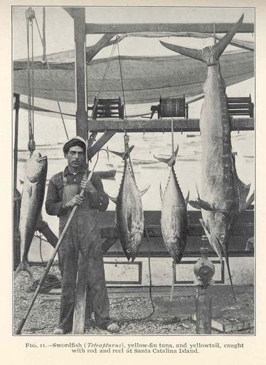 Keywords: FMIB 42095 Swordfish (Tetraplurus), yellow-fin tuna, and yellowtail, caught with rod and reel at Santa Catalina Island.jpeg check categories 7 September 2015 3 Swordfish Tetraplurus yellow-fin tuna and yellowtail caught with rod and reel at Santa Catalina Island Subject Fishers Tag Sport Fishing 1910 Cite book Sport Fishing in California and Florida Holder Charles F Washington DC Government Printing Office 1910 Bulletin of the Bureau of Fisheries vol 28 1908 Part 1 Plate VI-11 Creator Charles Frederick Holder PD-UWASH-FMIB Institution University of Washington FMIB-source accession number 42095 Images from the Freshwater and Marine Image Bank to check Charles Frederick Holder Fishermen Recreational fishing |