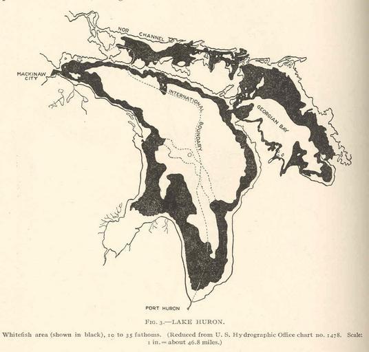 | Keywords: FMIB 42195 Lake Huron Whitefish area (shown in black), 10 to 35 fathoms.jpeg check categories 19 September 2015 2 Lake Huron Whitefish area shown in black 10 to 35 fathoms Subject Whitefishes--Geographical distribution Huron Lake Michigan and Ontario --Maps Geographic Subject United States--Michigan--Huron Lake Canada--Ontario--Huron Lake Tag Commercial Fisheries 1910 Cite book Plan for Promoting the Whitefish Production of the Great Lakes Bulletin of the Bureau of Fisheries vol 28 1908 Part 1 Reighard Paul Washington DC Government Printing Office 1910 Fig 3 Paul Reighard PD-UWASH-FMIB Institution University of Washington FMIB-source accession number 42195 Images from the Freshwater and Marine Image Bank to check Paul Reighard Fisheries |