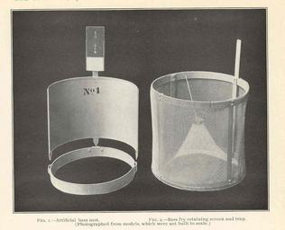 Keywords: FMIB 42257 Artificial bass nest (1).jpeg check categories 19 September 2015 1 Artificial bass nest 1 Bass fry retaining screen and trap 2 Subject Aquaculture--Equipment and supplies Tag Aquaculture 1910 Cite book New and Improved Devices for Fish Culturists Bulletin of the Bureau of Fisheries vol 28 1908 Part 2 Fuller Alfred E Washington DC Government Printing Office 1910 Plate CIV-1-2 Alfred E Fuller PD-UWASH-FMIB Institution University of Washington FMIB-source accession number 42257 Images from the Freshwater and Marine Image Bank to check Alfred E Fuller |