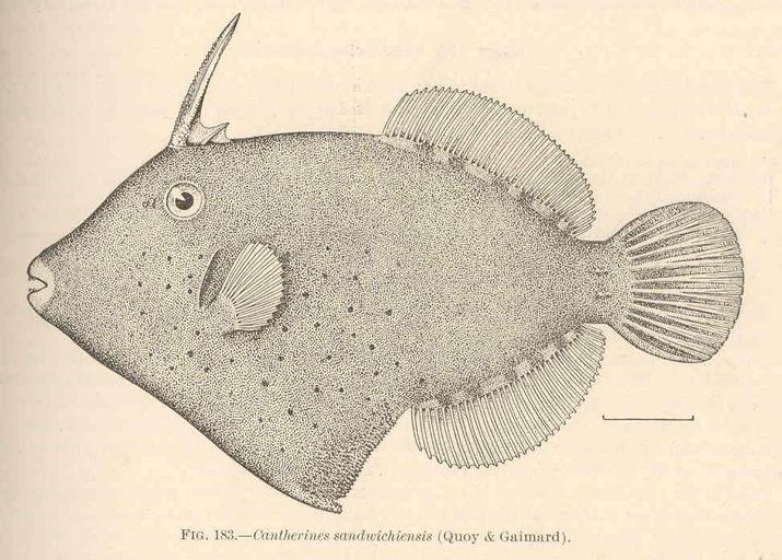 | Keywords: FMIB 42541 Cantherines sandwichiensis (Quoy & Gaimard).jpeg Cantherines sandwichiensis Quoy Gaimard Subject Cantherines Monacanthidae Tag Fish 1905 Cite book Shore Fishes of the Hawaiian Islands with a General Account of the Fish Fauna Jordan David Starr; Evermann Barton Warren Washington DC Government Printing Office 1905 Bulletin of the United States Fish Commission vol 23 for 1903 part I Fig 183 Creator David Starr Jordan Creator Barton Warren Evermann PD-UWASH-FMIB Institution University of Washington FMIB-source accession number 42541 Images from the Freshwater and Marine Image Bank to check David Starr Jordan Barton Warren Evermann Cantherhines sandwichiensis |