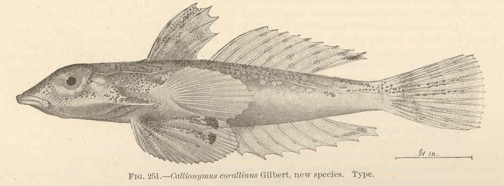 | Keywords: FMIB 42721 Callionymus corallinus Gilbert, new species Type.jpeg Callionymus corallinus Gilbert new species Type Subject Dragonets Callionymus Tag Fish 1905 Cite book Deep Sea Fishes Aquatic Resources of the Hawaiian Islands Gilbert Charles Henry Washington DC Government Printing Office 1905 Bulletin of the United States Fish Commission vol 23 for 1903 part 2 Fig 251 Creator Charles Henry Gilbert PD-UWASH-FMIB Institution University of Washington FMIB-source accession number 42721 Images from the Freshwater and Marine Image Bank to check Charles Henry Gilbert Synchiropus corallinus |