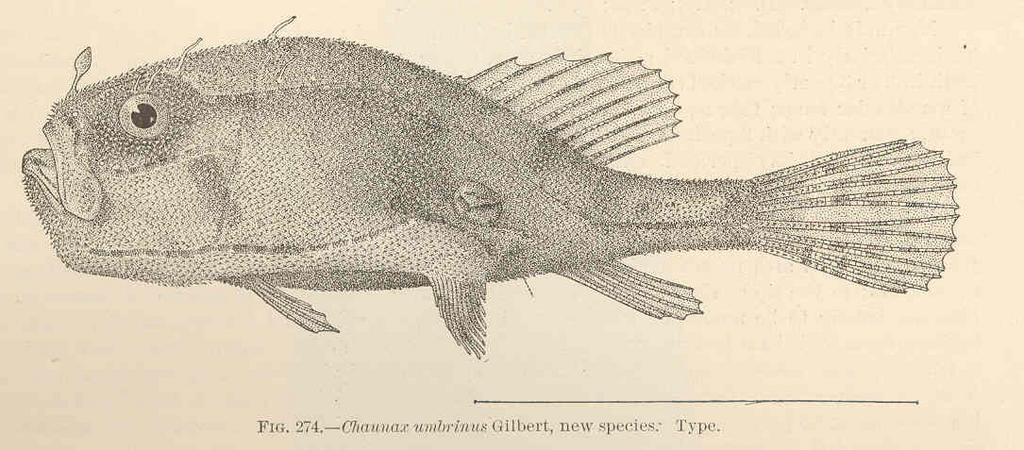 | Keywords: FMIB 42753 Chaunax umbrinus Gilbert, new species Type.jpeg  Chaunax umbrinus Gilbert new species Type Subject Chaunacidae Chaunax Tag Fish 1905 Cite book Deep Sea Fishes Aquatic Resources of the Hawaiian Islands Gilbert Charles Henry Washington DC Government Printing Office 1905 Bulletin of the United States Fish Commission vol 23 for 1903 part 2 Fig 274 Creator Charles Henry Gilbert PD-UWASH-FMIB Institution University of Washington FMIB-source accession number 42753 Images from the Freshwater and Marine Image Bank to check Charles Henry Gilbert Chaunax umbrinus |