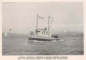 Keywords: FMIB 44769 Pacific American Fisheries Cannery Tender Warrior This is the first cannery tender to be equipped with a diesel engine.jpeg Pacific American Fisheries Cannery Tender Warrior This is the first cannery tender to be equipped with a diesel engine Subject Warrior Boat Fishing boats Tag Vessels 1915 Cite book Pacific American Fisheries Cannery Tender Warrior This is the first cannery tender to be equipped with a diesel engine Seattle WA 1915 Pacific Fisherman Year Book 1915 23 author PD-UWASH-FMIB Institution University of Washington FMIB-source accession number 44769 Images from the Freshwater and Marine Image Bank to check Warrior ship 1914 |