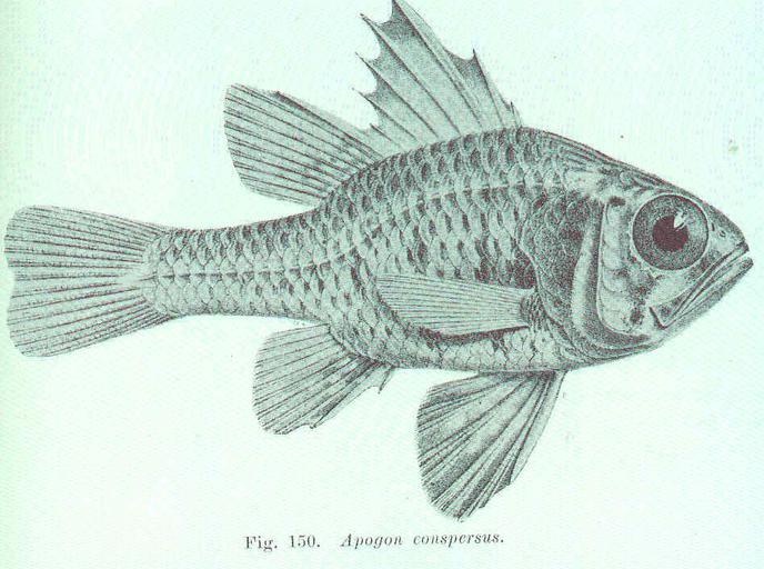 | Keywords: FMIB 45655 Apogon conspersus.jpeg Apogon conspersus Subject Apogon Pike Tag Fish 1921 Cite book Illustrated Catalogue of the Fishes of South Australia Waite Edgar R Adelaide Australia G Hassell Son 1921 Fig 149 Creator Edgar Ravenswood Waite PD-UWASH-FMIB Institution University of Washington FMIB-source accession number 45655 Images from the Freshwater and Marine Image Bank to check Edgar Ravenswood Waite Vincentia conspersa | ||||