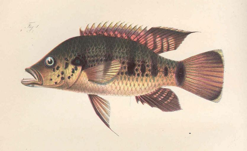 | Keywords: FMIB 45816 Hemichromis fasciatus.jpeg  check categories 18 August 2015 2 Hemichromis fasciatus Subject Jewel Fish Cichlids Tag Fish 1863 Cite book Memoire sur les Poissons de la Cote de Guinee Bleeker Pieter Haarlem Netherlands De Erven Loosjes 1863 Natuurkundige Verhandlingen van de Hollandsche MaatschappiJ der Wetenschappen te Haarlem v 18 1863 Plate 5 Fig 1 Creator Pieter Bleeker PD-UWASH-FMIB Institution University of Washington FMIB-source accession number 45816 Images from the Freshwater and Marine Image Bank to check Pieter Bleeker Hemichromis fasciatus |