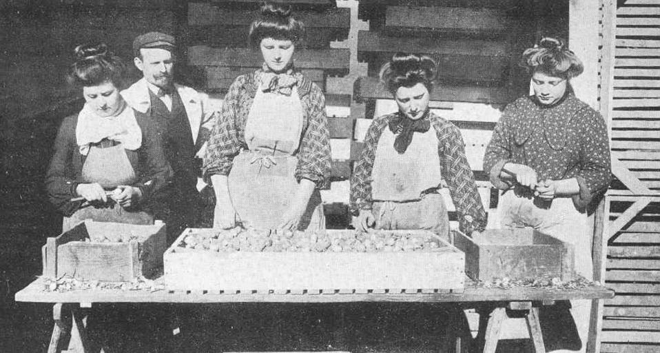 | Keywords: FMIB 47716 Debouchage des Escargots.jpeg check categories 16 September 2015 3 Debouchage des Escargots C'est la premiere operation concernant la preparation des Escargots Les ouvrieres enlevent le bouchon sorte d'opercule calcaire avec un couteau afin de s'assurer que l'Escargot est bien vivant Elles deposent au fur et a mesure les Escargots debouches dans des caisses Subject Snails--Processing Snails--Cleaning Tag Mollusks 1911 00 Cite book l'Escargot Elevage et Parcage Lucratifs preparation culinaire et vente Boisseau G ; Lanorville G Paris France Librairie Hachette 1911 Plate 9 Creator G Boisseau Creator Georges Lanorville PD-UWASH-FMIB Institution University of Washington FMIB-source accession number 47716 Images from the Freshwater and Marine Image Bank to check G Boisseau Georges Lanorville Mollusca |