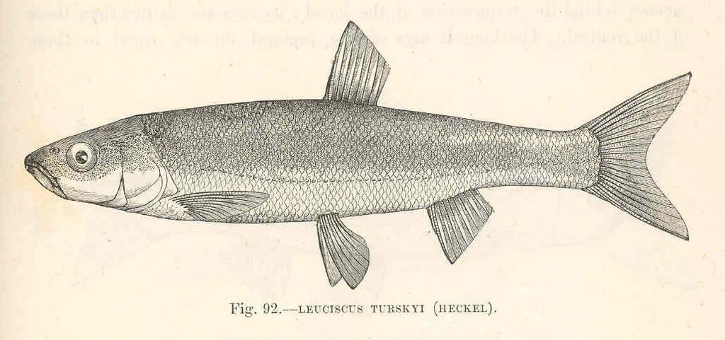 | Keywords: FMIB 48060 Leuciscus turskyi (Heckel).jpeg Leuciscus turskyi Heckel Subject Cyprinidae Leuciscus Tag Fish 1886 Cite book Fresh-Water Fishes of Europe a History of their Genera Species Structure Habits and Distribution Seeley H G London England Cassell Company Limited 1886 Fig 92 Creator Harry Govier Seeley PD-UWASH-FMIB Institution University of Washington FMIB-source accession number 48060 Images from the Freshwater and Marine Image Bank to check Harry Seeley Telestes turskyi | ||||