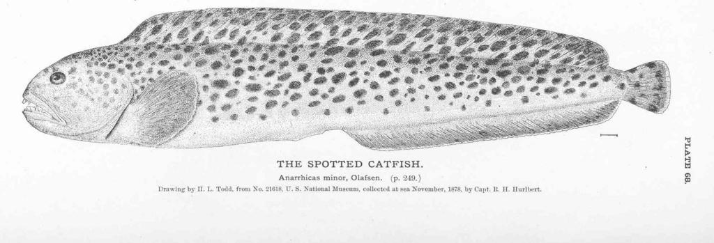 Keywords: FMIB 50917 Spotted Catfish.jpeg check categories 7 September 2015 3 Spotted Catfish Anarrhicas minor Olafsen Subject Wolffishes Anarhichadidae Tag Fish 1884 Cite book Fisheries and Fishery Industries of the United States Section I Natural History of Useful Aquatic Animals Plates Goode George Brown Washington DC Government Printing Office 1884 Plate 68 Creator H L Todd PD-UWASH-FMIB Institution University of Washington FMIB-source accession number 50917 Images from the Freshwater and Marine Image Bank to check H L Todd Anarhichas lupus Arius maculatus |