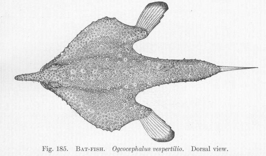 | Keywords: FMIB 51528 Bat-Fish Ogcocephalus vespertilio Dorsal view.jpeg Bat-Fish Ogcocephalus vespertilio Dorsal view Subject Ogcocephalidae Tag Fish 1907 Cite book Fishes of North Carolina Smith Hugh M Raleigh NC E M Uzzell Co 1907 North Carolina Geological and Economic Survey vol II Fig 185 Creator Hugh McCormick Smith PD-UWASH-FMIB Institution University of Washington FMIB-source accession number 51528 Images from the Freshwater and Marine Image Bank to check Hugh McCormick Smith Ogcocephalus vespertilio |