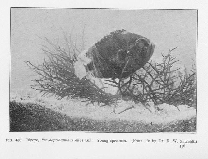 | Keywords: FMIB 52008 Bigeye, Pseudopriacanthus allus Gill Young specimen.jpeg check categories 8 September 2015 2 Bigeye Pseudopriacanthus allus Gill Young specimen Subject Short bigeye Tag Fish 1907 Cite book Fishes Jordan David Starr New York City NY Henry Holt and Company 1907 Fig 436 Creator Robert Wilson Shufeldt PD-UWASH-FMIB Institution University of Washington FMIB-source accession number 52008 Images from the Freshwater and Marine Image Bank to check Robert Wilson Shufeldt Pristigenys alta |