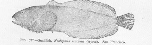 | Keywords: FMIB 52149 Snailfish, Neoliparis mucosus (Ayres) San Francisco.jpeg Snailfish Neoliparis mucosus Ayres San Francisco Subject Cyclopteridae Tag Fish 1907 Cite book Fishes Jordan David Starr New York City NY Henry Holt and Company 1907 Fig 577 Creator David Starr Jordan PD-UWASH-FMIB Institution University of Washington FMIB-source accession number 52149 Images from the Freshwater and Marine Image Bank to check David Starr Jordan Liparis mucosus | ||||