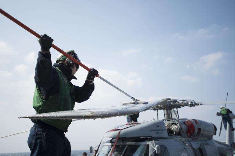 | Keywords: Foal Eagle 2015 150312-N-SY784-095.jpg en 150312-N-SY784-095 WATERS TO THE WEST OF THE KOREAN PENINSULA Aviation Electrician's Mate 2nd Class Ryan Pittman washes the blade of a SH-60 Seahawk helicopter while underway aboard the Arleigh Burke-class guided-missile destroyer USS Michael Murphy during exercise Foal Eagle 2015 Murphy is on patrol in the 7th Fleet area of operation supporting security and stability in the Indo-Asia-Pacific region Foal Eagle is a series of annual training events that are defense-oriented and designed to increase readiness and maintain stability on the Korean Peninsula while strengthening the ROK-U S alliance and promoting regional peace and stability of the Indo-Asia-Pacific region 2015-03-12 March 12 2015 https //www dvidshub net/image/1834431 150312-N-SY784-095 2015-03-24 15 50 USS MICHAEL MURPHY AT SEA PD-USGov-Military-Navy SH-60 Seahawk Images from DoD uploaded by Fæ Foal Eagle 2015 |