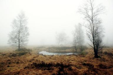Keywords: fog autumn nature meadow mood atmosphere landscape moor tree germany belgium venn weird hiking moist nature conservation nature reserve moorland mystical water water hole loneliness trees autumn mood wet grass