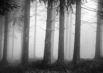Keywords: fog forest tree trunks mystical landscape trees spruce conifer tree weird gloomy autumn mood twilight weather weather mood atmosphere aesthetic forest floor autumn light tribe branches nature log kahl wood