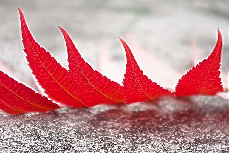 Keywords: foliage red autumn leaves macro color coloration the details colors structure on the curb veins